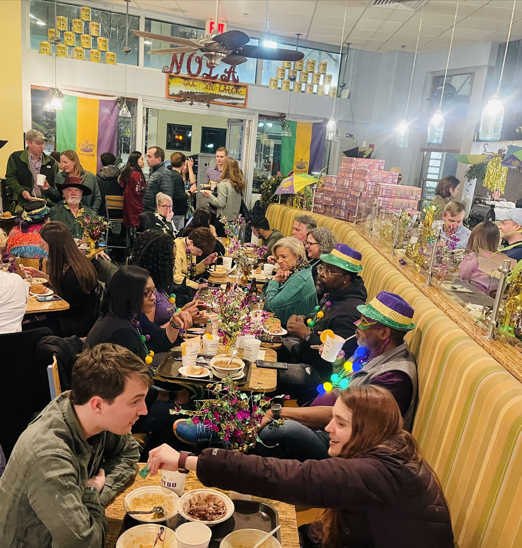 For FAT TUESDAY - February 17, 2026 - Bayou Bakery, Coffee Bar & Eatery transforms into a Bayou Gras Mardi Pardi from 5PM until 9PM with an ALL YOU CAN EAT + DRINK MENU [see below.] As the DMV's only Mardi Gras Headquarters, New Orleans Native Chef David Guas offers authentic Parade Food + Drink and LIVE MUSIC from The District Brass Band. Bayou Bakery will be open with regular service with Mardi Gras specials to capture the spirit of the day from 7AM-4PM [closed from 4PM-5PM to get ready for the Mardi Pardi!]